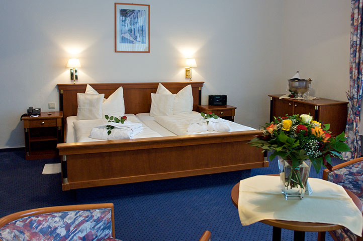 Großzügig geschnittene Zimmer in bester Innenstadtlage, zusätzlich sind unsere Superior Zimmer mit exklusiven Fair Trade Badeartikeln, Minibar, flauschigen Frotte- Bademänteln und Hotel – Slippern ausgestattet. Eine kostenfreie Flasche Mineralwasser und kostenfreies W- Lan gehören ebenso wie der late check out (bis 12.00 Uhr) zu unserem Superior Angebot. Zum Teil sind unsere Superior mit modernem Laminat ausgestattet.